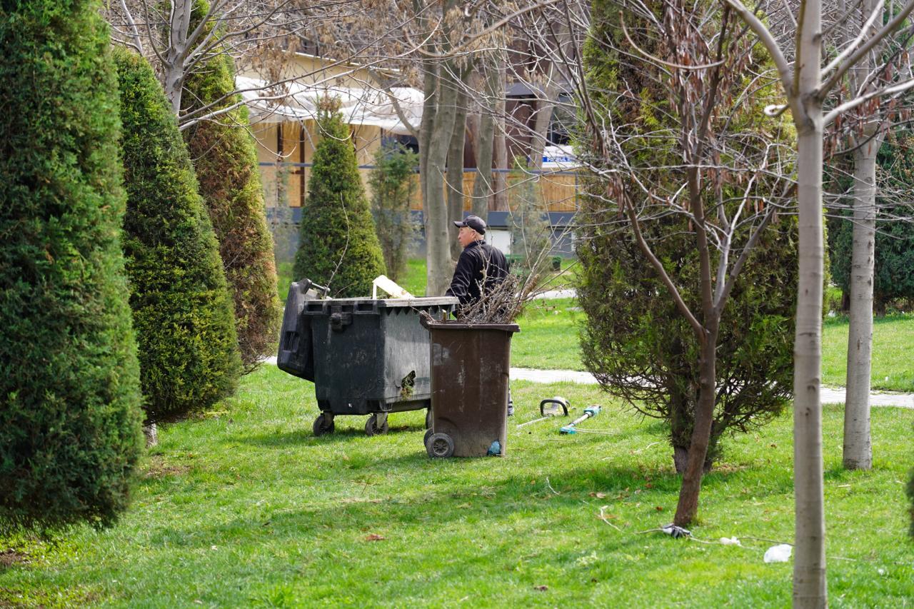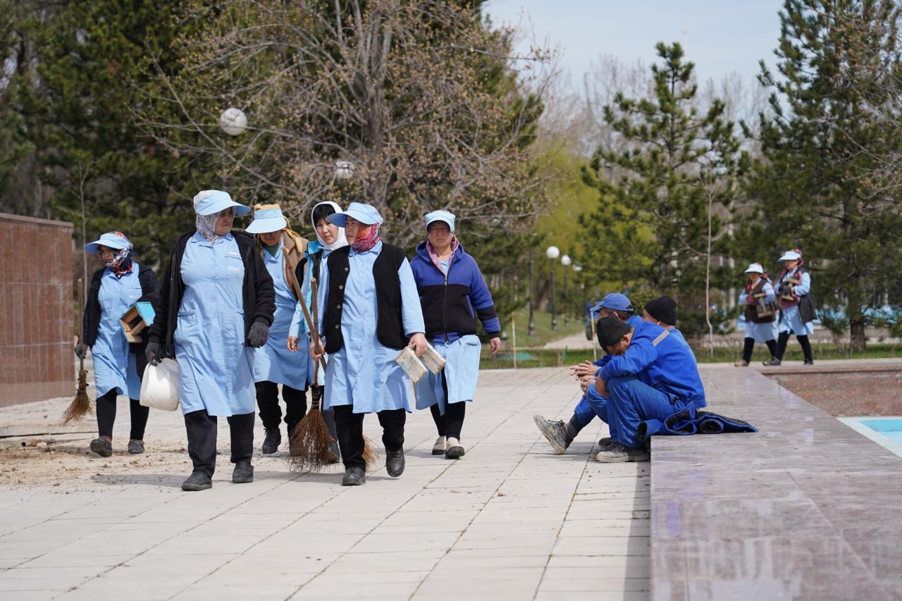 С метлами, лопатами и мешками они проходят квартал за кварталом, собирая мусор и подметая тротуары. Работа идёт не спешно: кто-то метёт дороги, кто-то собирает листву, кто-то грузит мешки с мусором в машины. А в парках и зеленых зонах спиливают сухие деревья и высаживают на их месте молодые деревца.