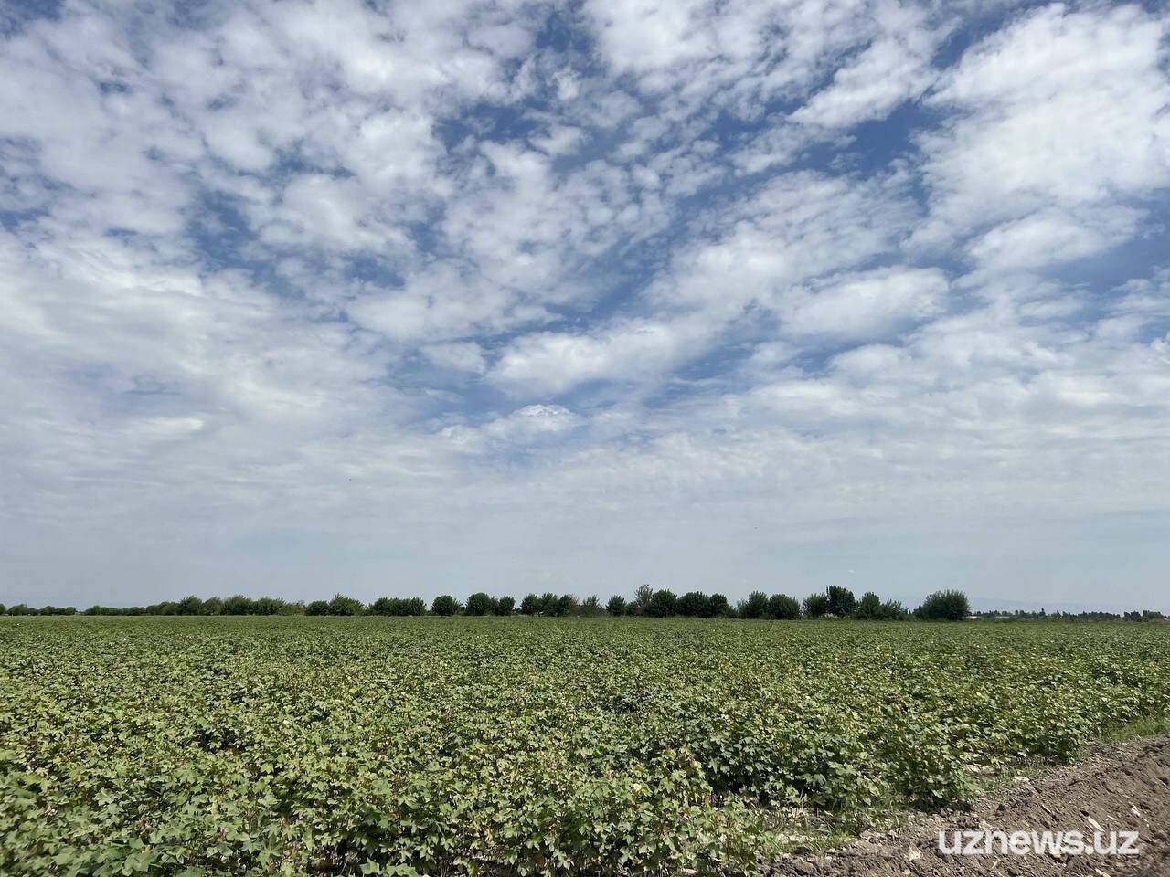 Мы прибыли в бывший колхоз «Пятилетка», расположенный в Куйичирчикском районе Ташобласти – место, где Андрей установил одну из своих пасек. Здесь на границе двух хлопковых полей стоят 70 ульев.