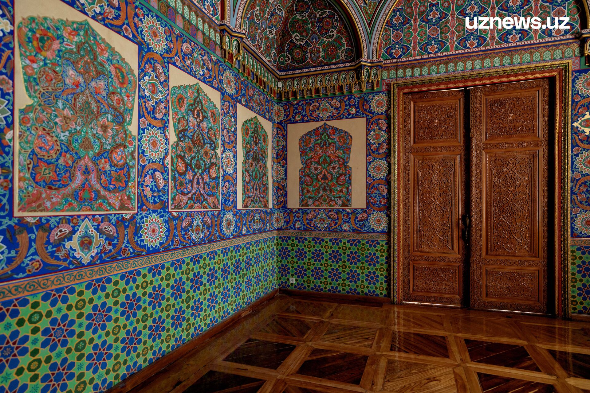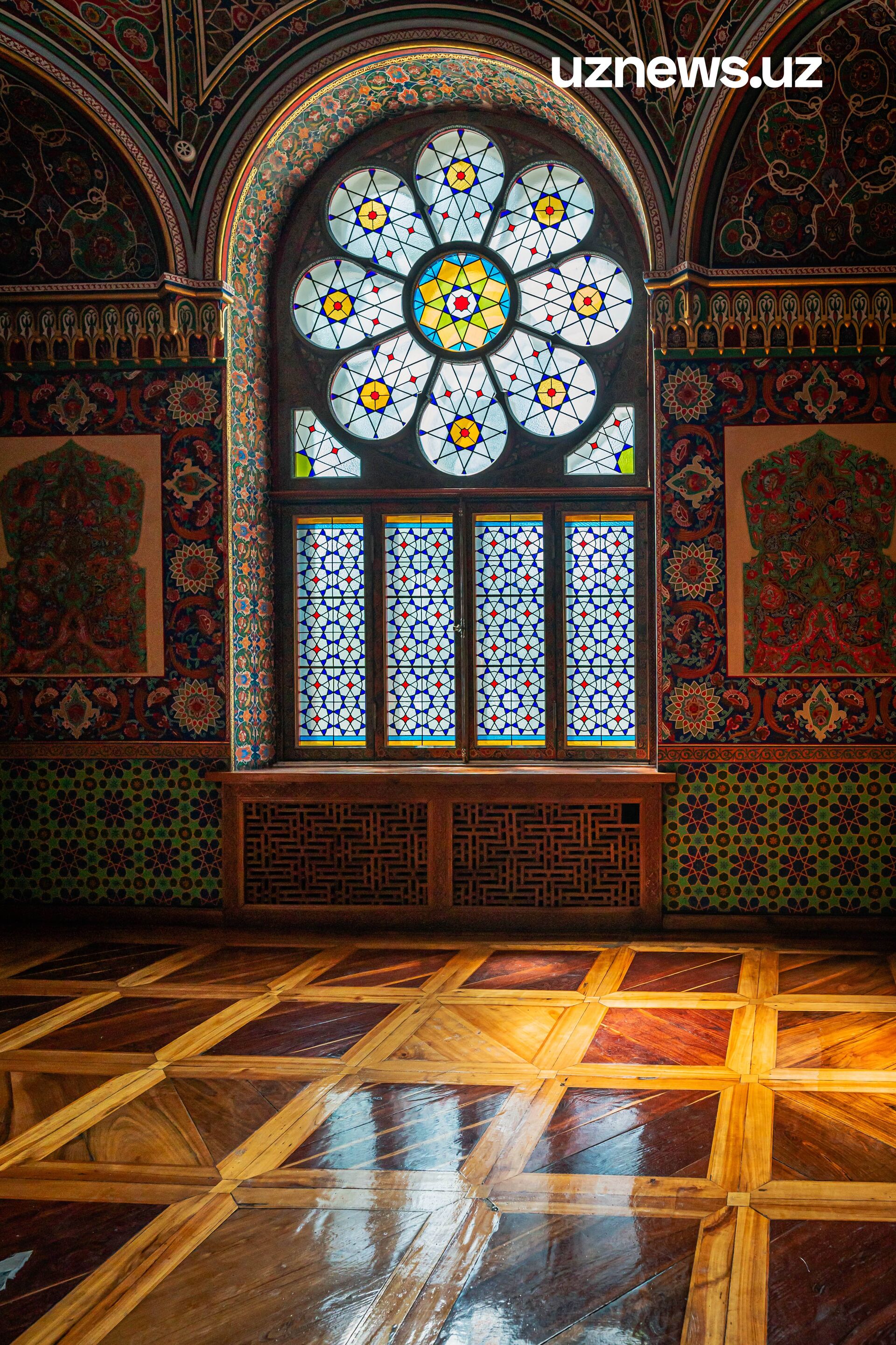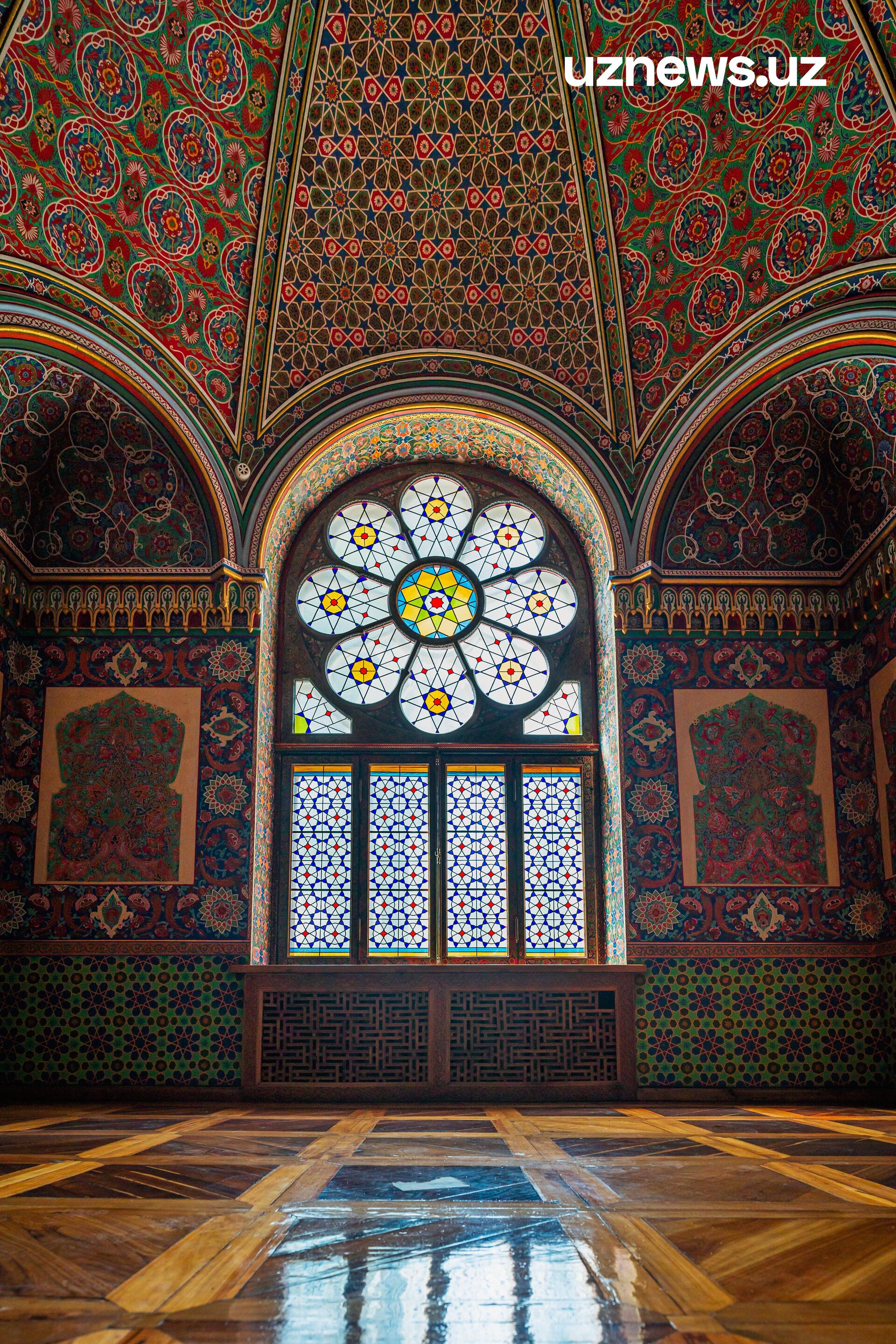 В подвале, который выглядит сейчас, словно старинный бункер, когда-то обитали повара, садовники, конюхи и смотрители флигелей. Внутри дворца всё ещё существует западное и восточное крылья, которые строились специально для приёмов иностранцев. В западной части резиденции он принимал европейских и русских гостей, а в восточной – посетителей из Ирана, Индии и т. д. Азиатское крыло – самое живописное место во всём дворце. На стенах можно увидеть настоящее буйство красок с привычными для узбекистанцев орнаментами, но в новой и свежей обработке, созданной Гейнцельманом и Бенуа. Из окон в определённое время суток ярко прорываются лучи солнца, отбрасывая на пол причудливые тени. Европейская же часть показалась наиболее скучной. Окрашенные стены в один определённый тон вишнёвого могут наводить уныние. Тем более, если сравнивать эту часть дворца с расписанным яркими цветами восточным крылом.