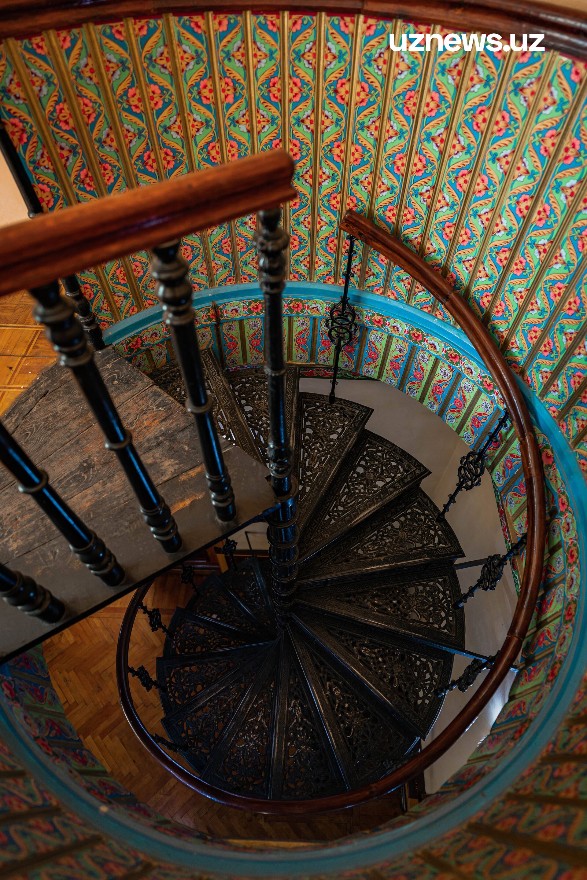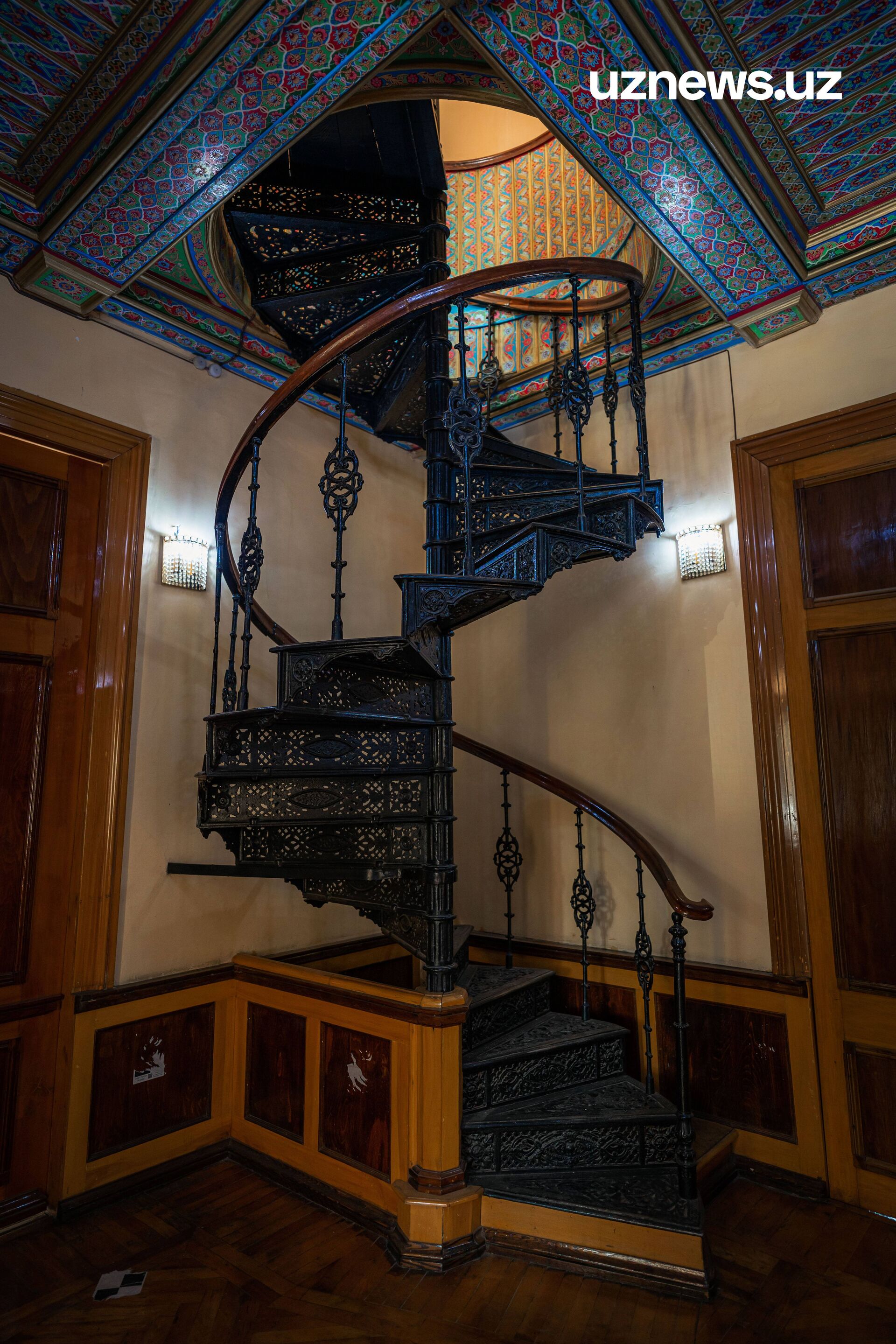 В углу холла – чугунная винтовая лестница, которая ведёт в пустующую комнату. На самом деле, практически все помещения во дворце оказались необжитыми. Никакой мебели здесь нет, а былая роскошь сохранилась лишь в ярких красках стен и витражей.
