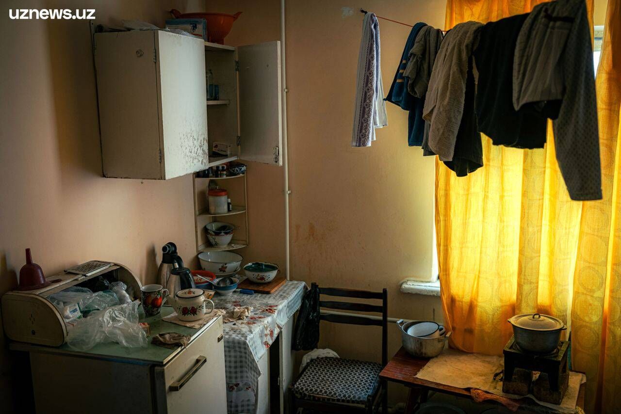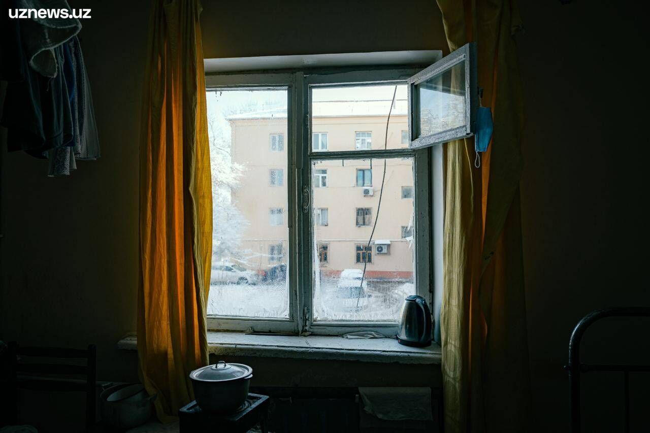 Бывшее общежитие на окраине Ташкента – желтая четырехэтажка, построенная буквой П. Большинство окон занавешены, из некоторых слышны крики. Здесь в основном живут полунищие, малообеспеченные многодетные семьи, люди с инвалидностью и пенсионеры.