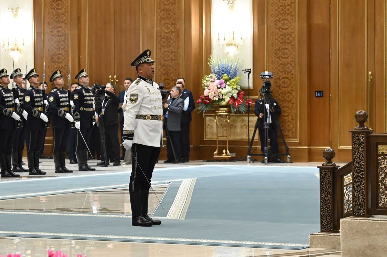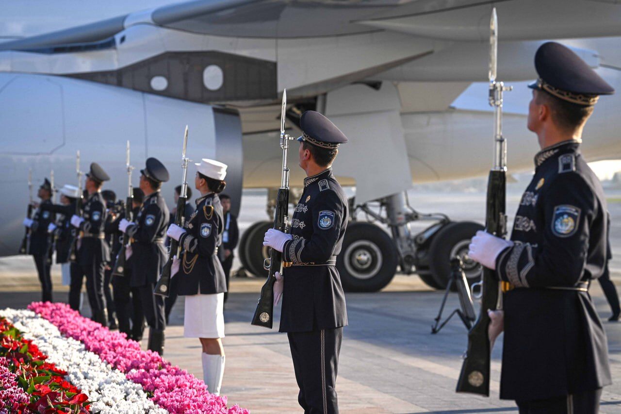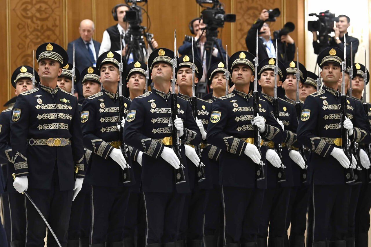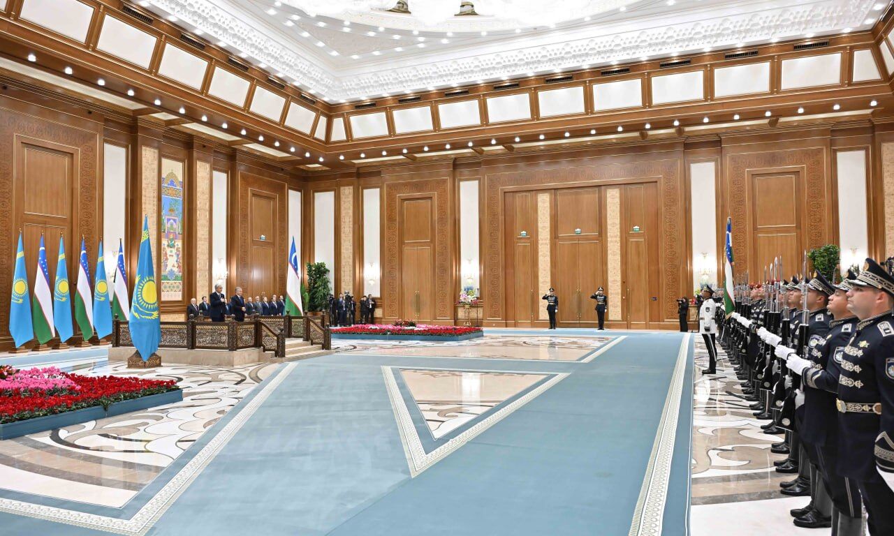 В честь высокого гостя была выстроена рота почётного караула. Президента Казахстана встретил глава государства Шавкат Мирзиёев.