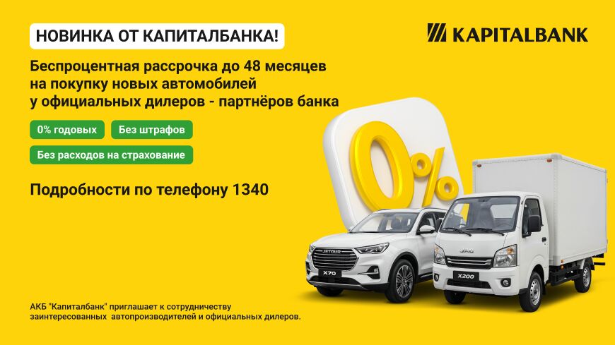 В рамках проводимых работ, а также в целях развития и поддержки малого бизнеса в Узбекистане Капиталбанк запустил новый продукт — беспроцентную рассрочку на покупку новых автомобилей у официальных дилеров.