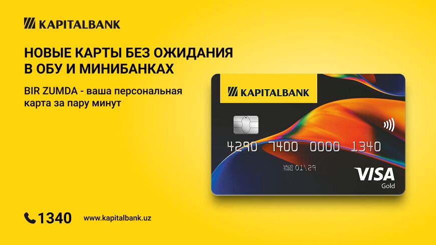 Капиталбанк расширяет доступ к банковским услугам и объявляет о запуске выдачи моментальных банковских карт нового формата «BIR ZUMDA» во всех минибанках и удалённых офисах банковского обслуживания, включая труднодоступные регионы, не дожидаясь изготовления именного пластика в филиалах.