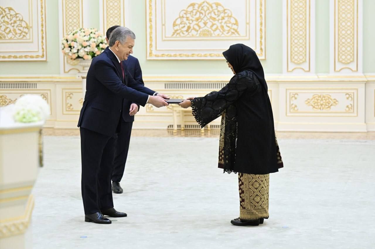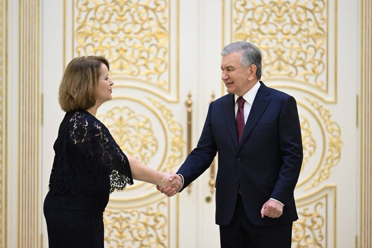 Шавкат Мирзиёев принял верительные грамоты у Чрезвычайных и Полномочных Послов Греции Параскеви Цевелеки, Индонезии Сити Рухайни Жухаятин, Латвии Гиртса Яунземса, Франции Валида Фука, России Алексея Ерхова, Японии Кэндзи Хираты и Таджикистана Насриддина Исматулло.