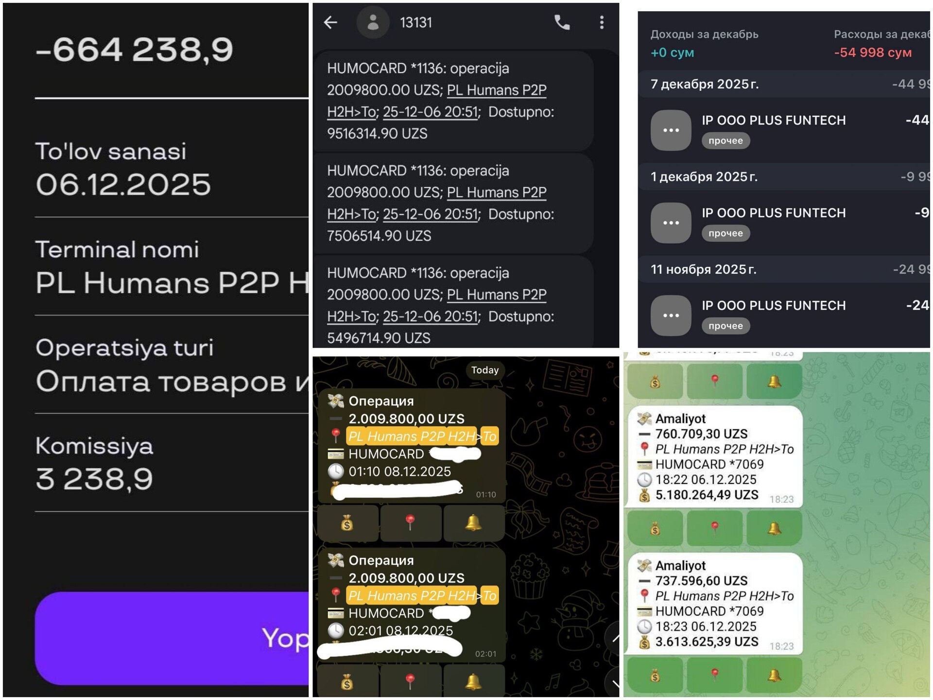 Пользователи соцсетей сообщили, что с некоторых банковских карт, привязанных к приложению Humans, списывают денежные средства без ведома владельцев. Некоторые утверждают, что с их карт списали до 20–30 миллионов сумов. Зафиксированы также случаи, когда деньги списывались частями — до нулевого баланса.