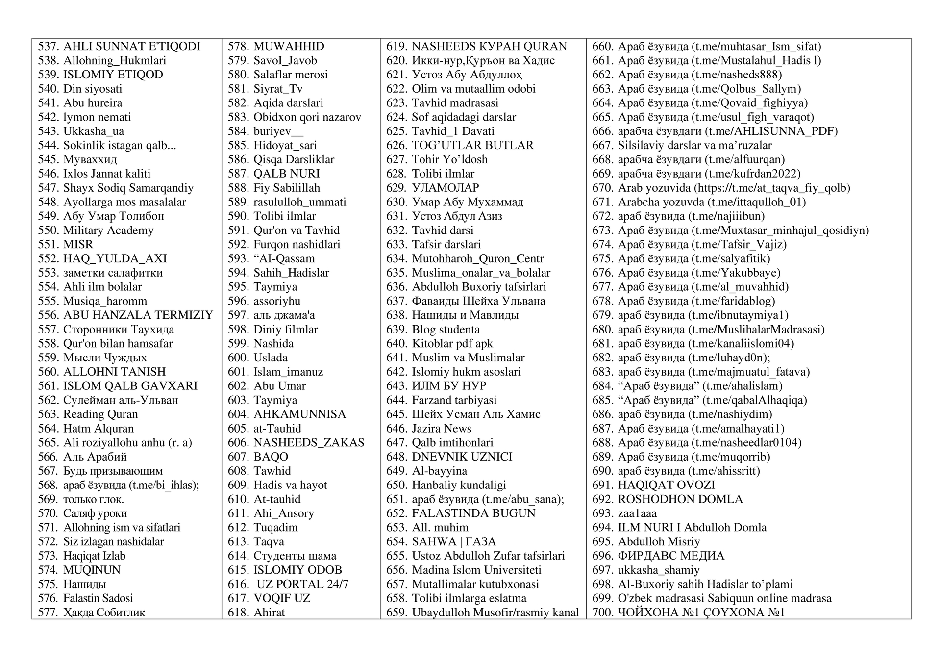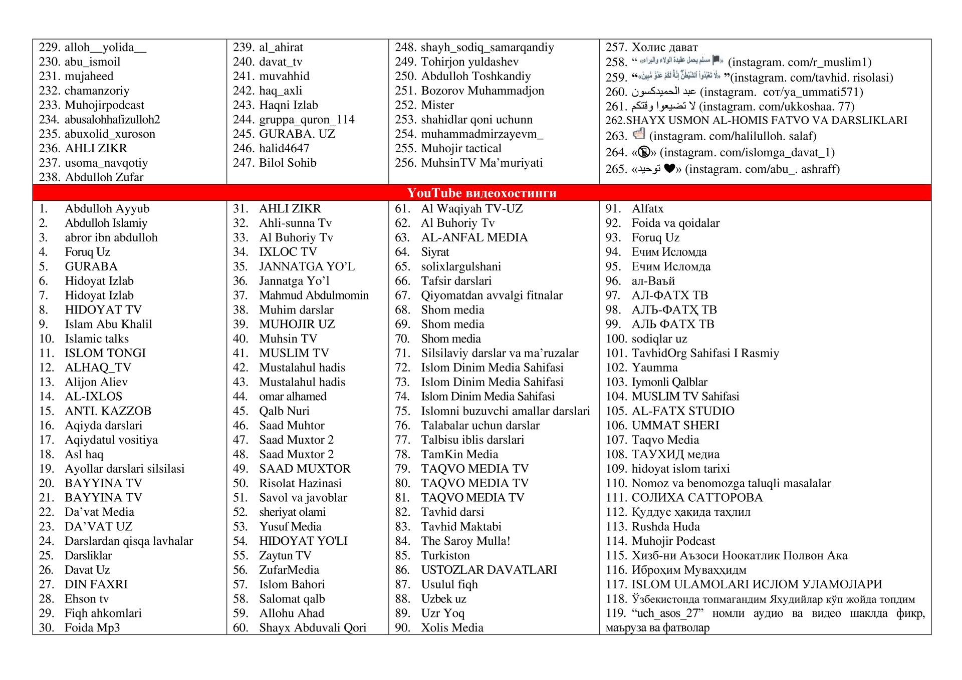 В список вошли почти 1400 ресурсов, 70% из которых приходятся на Telegram и Instagram.