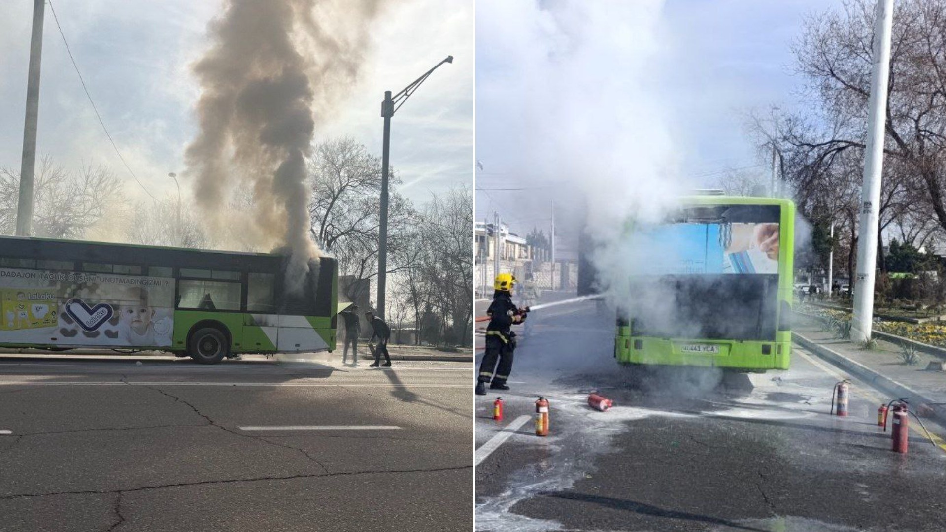 18 февраля в 12:02 в Управление по чрезвычайным ситуациям Ташкента поступило сообщение о возгорании автобуса на улице Янги Сергели в Сергелийском районе.