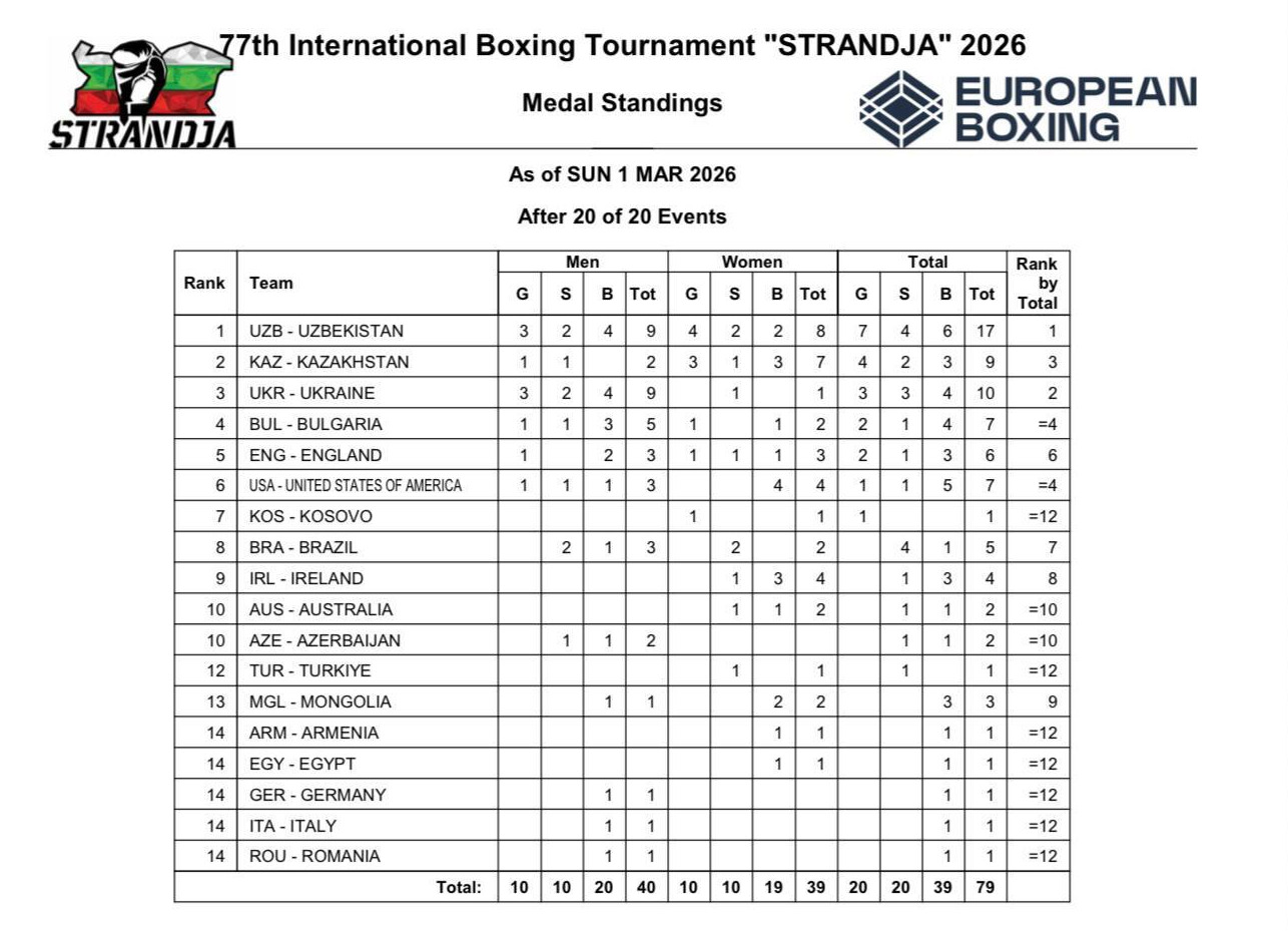Как сообщили в пресс-службе НОК Узбекистана, мужская сборная выиграла 3 золота, 2 серебра и 4 бронзы. Женская команда добавила 4 золотые, 2 серебряные и 2 бронзовые медали, показав лучший результат в своём зачёте.