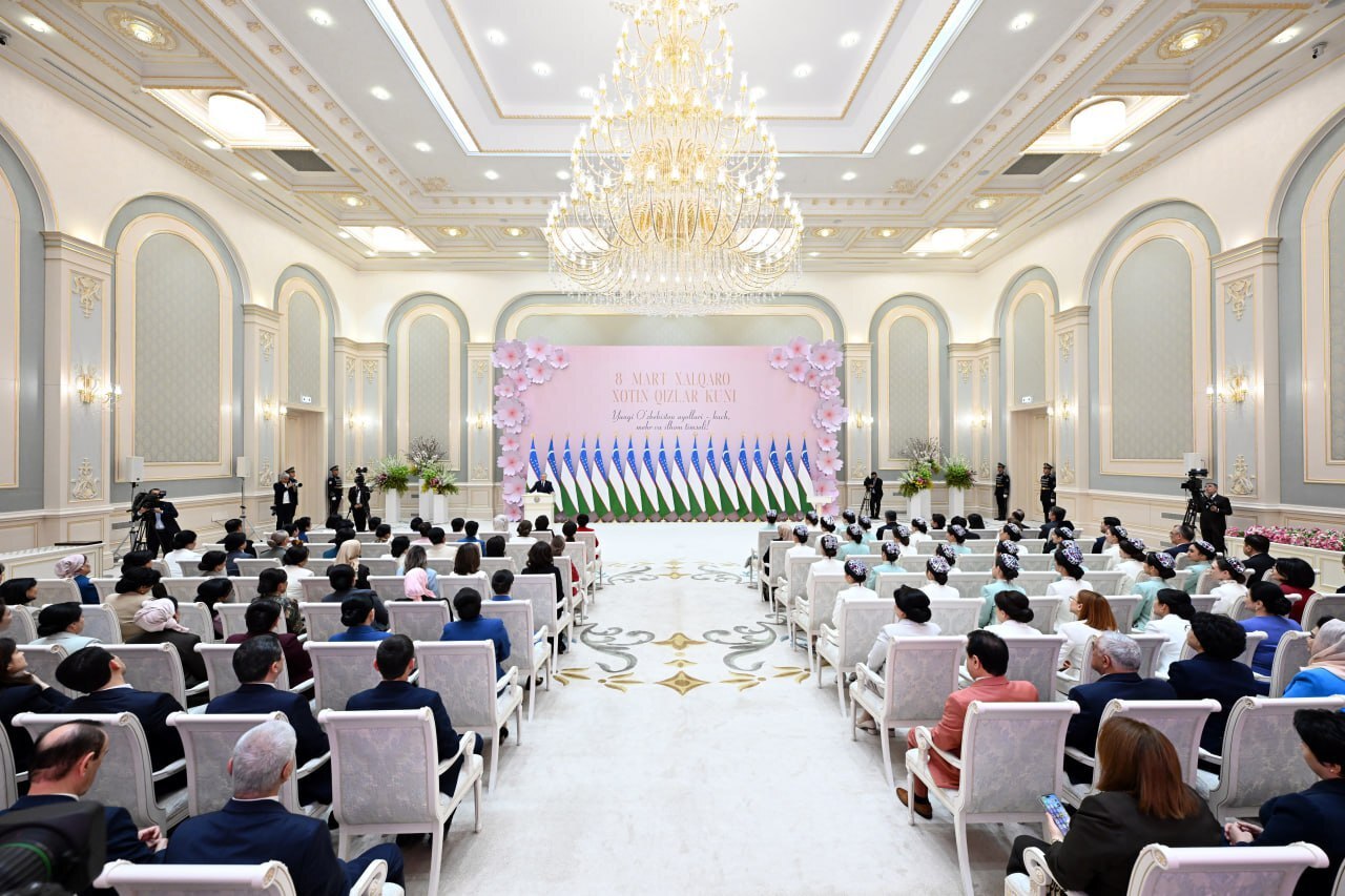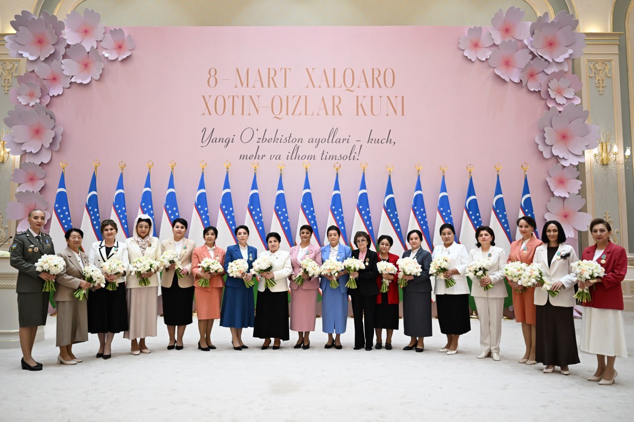 В резиденции «Куксарой» в пятницу состоялось торжественное мероприятие, посвящённое Международному женскому дню. Президент Шавкат Мирзиёев поздравил женщин страны с праздником, подчеркнул их ключевую роль в развитии общества и рассказал о новых мерах поддержки образования, занятости и предпринимательства.