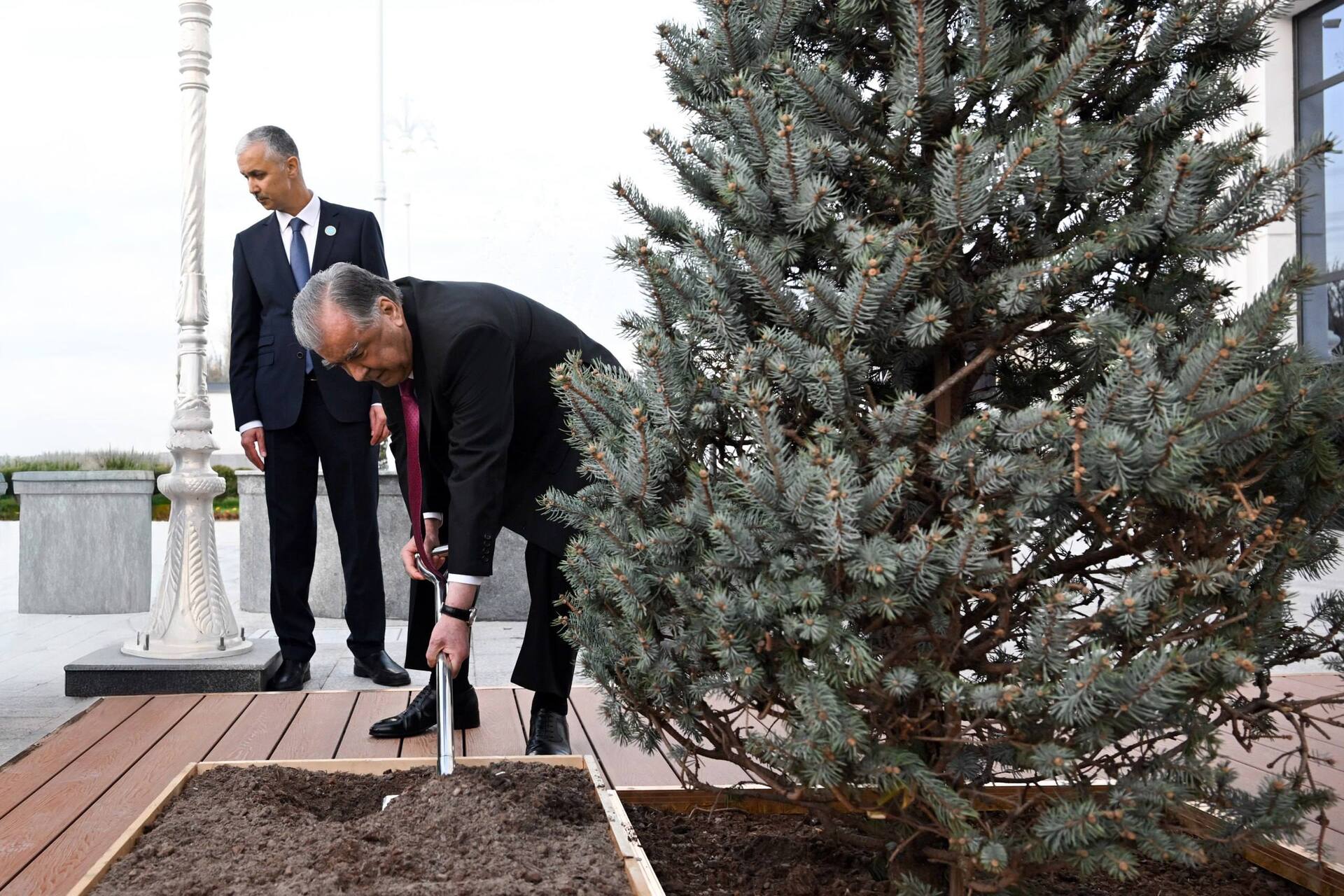 В завершение церемонии лидеры оставили памятные записи в Книге почетных гостей и посадили деревья на территории посольства.