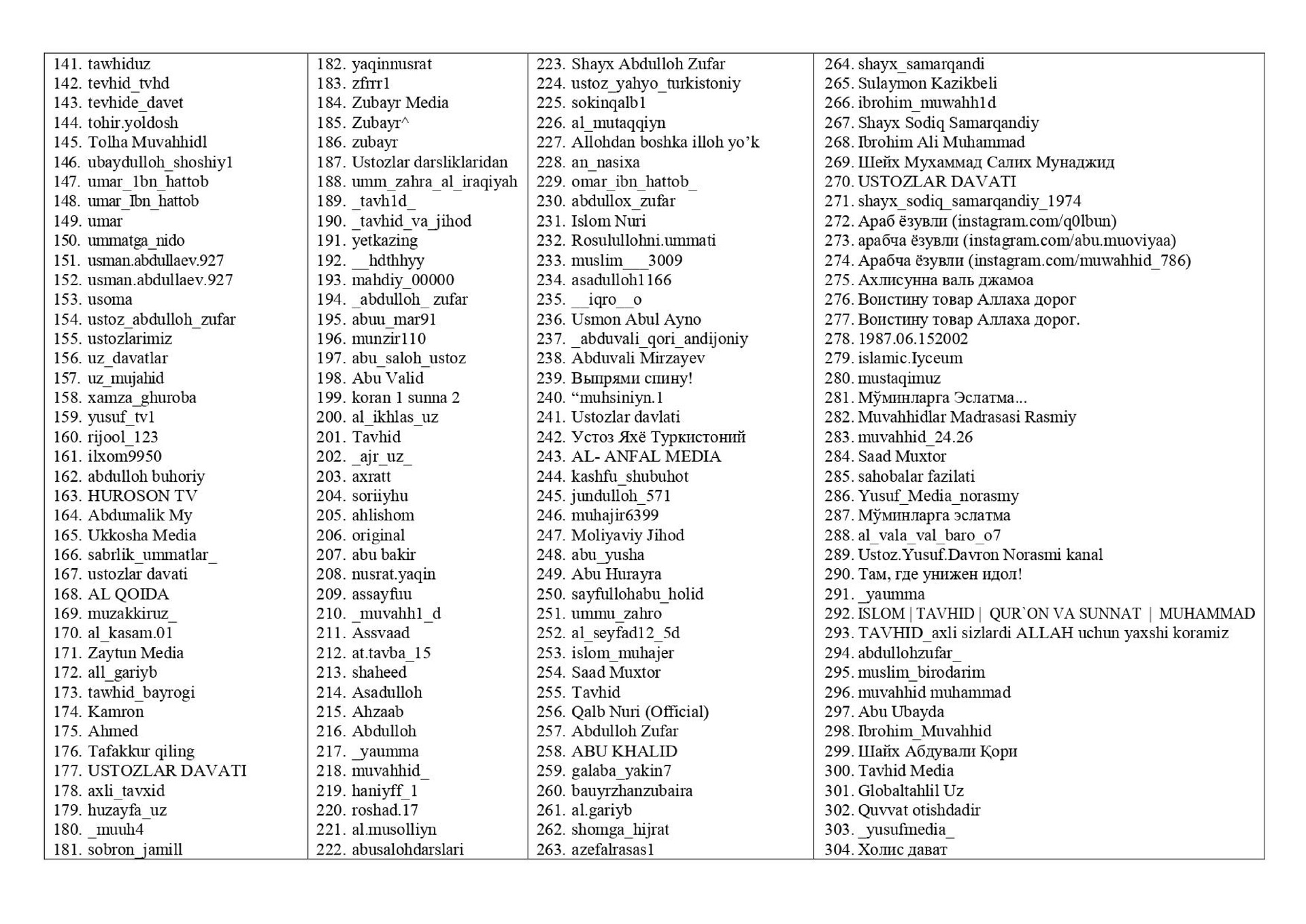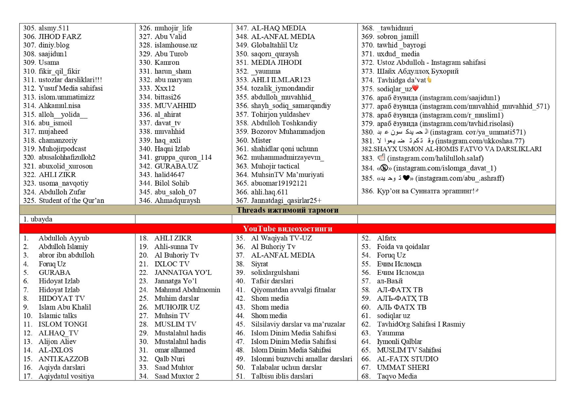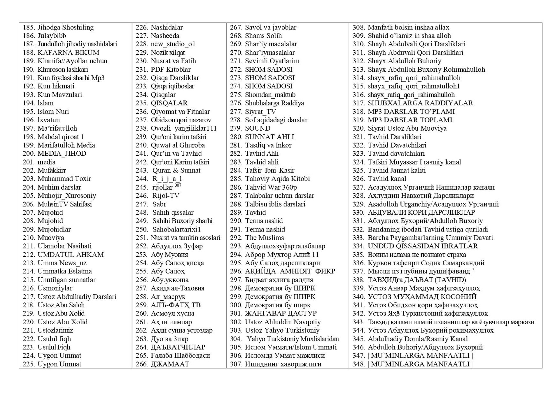 Верховный суд опубликовал обновлённый список запрещённых к ввозу, изготовлению, распространению и показу на территории Узбекистана материалов, которые связаны с идеями экстремизма и терроризма.