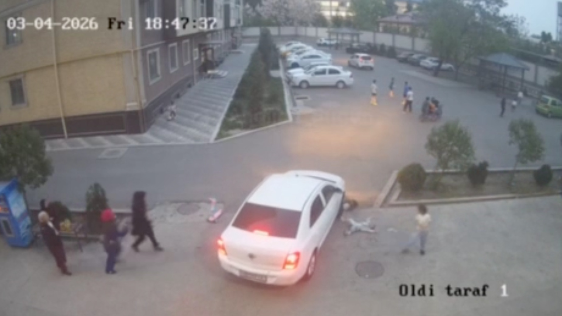 В социальных сетях распространилась видеозапись, на которой водитель Cobalt совершает наезд на маленьких детей во дворе махалли.