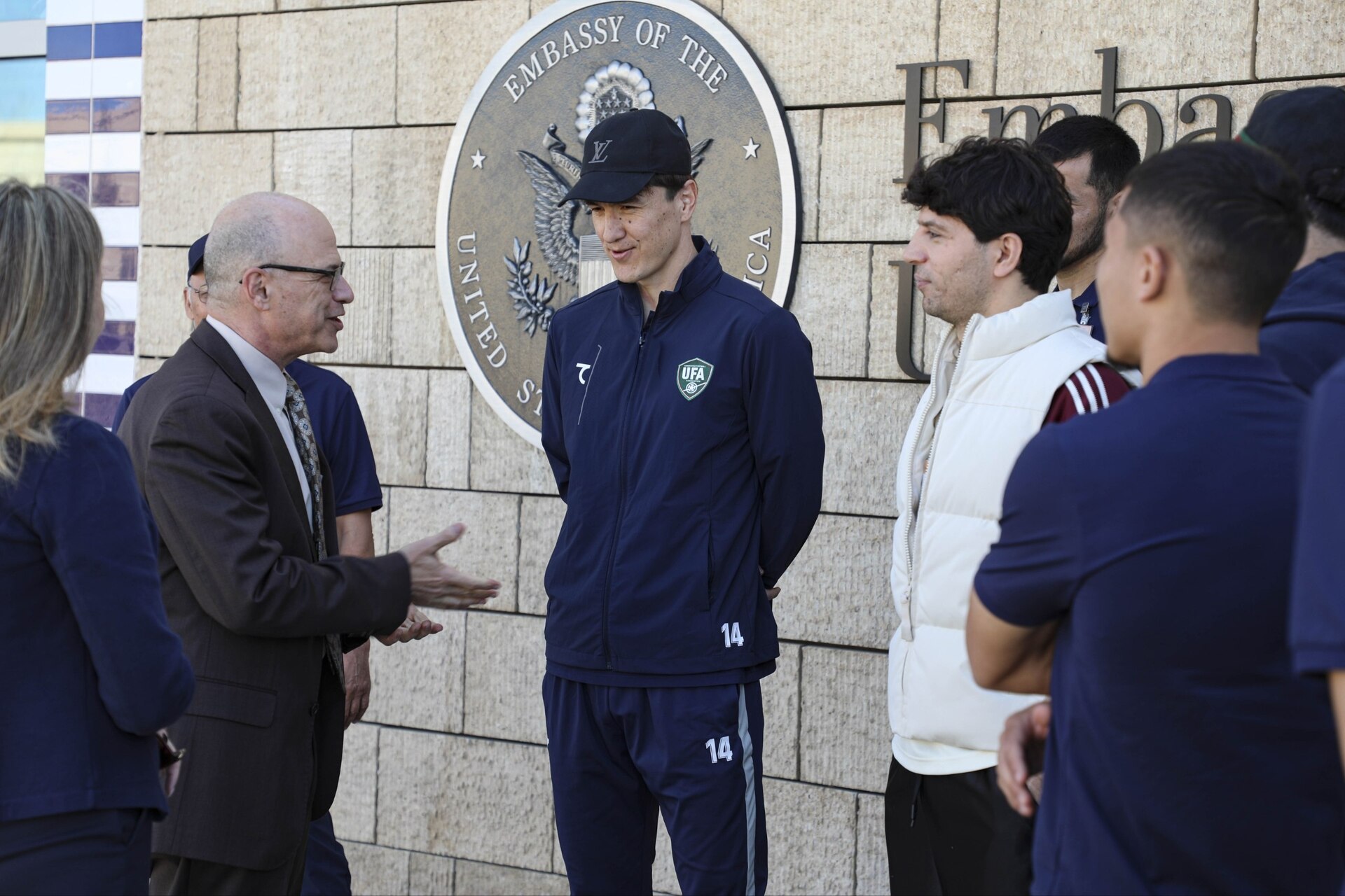 Как сообщает официальный Telegram-канал посольства США, в ходе встречи футболисты пообщались с сотрудниками и провели автограф-сессию. Мероприятие прошло в теплой и дружеской атмосфере.