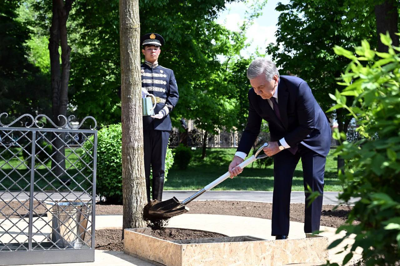 В завершение мероприятия президент посадил дерево на территории сквера Амира Темура.