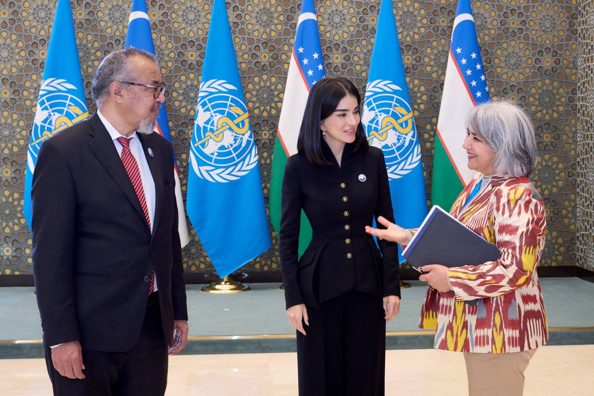 В рамках международного форума по противодействию наркоугрозам, проходящего в Самарканде, Саида Мирзиёева встретилась с генеральным директором Всемирной организации здравоохранения Тедросом Адханомом Гебрейесусом. Об этом глава Администрации президента сообщила в своём Telegram-канале.