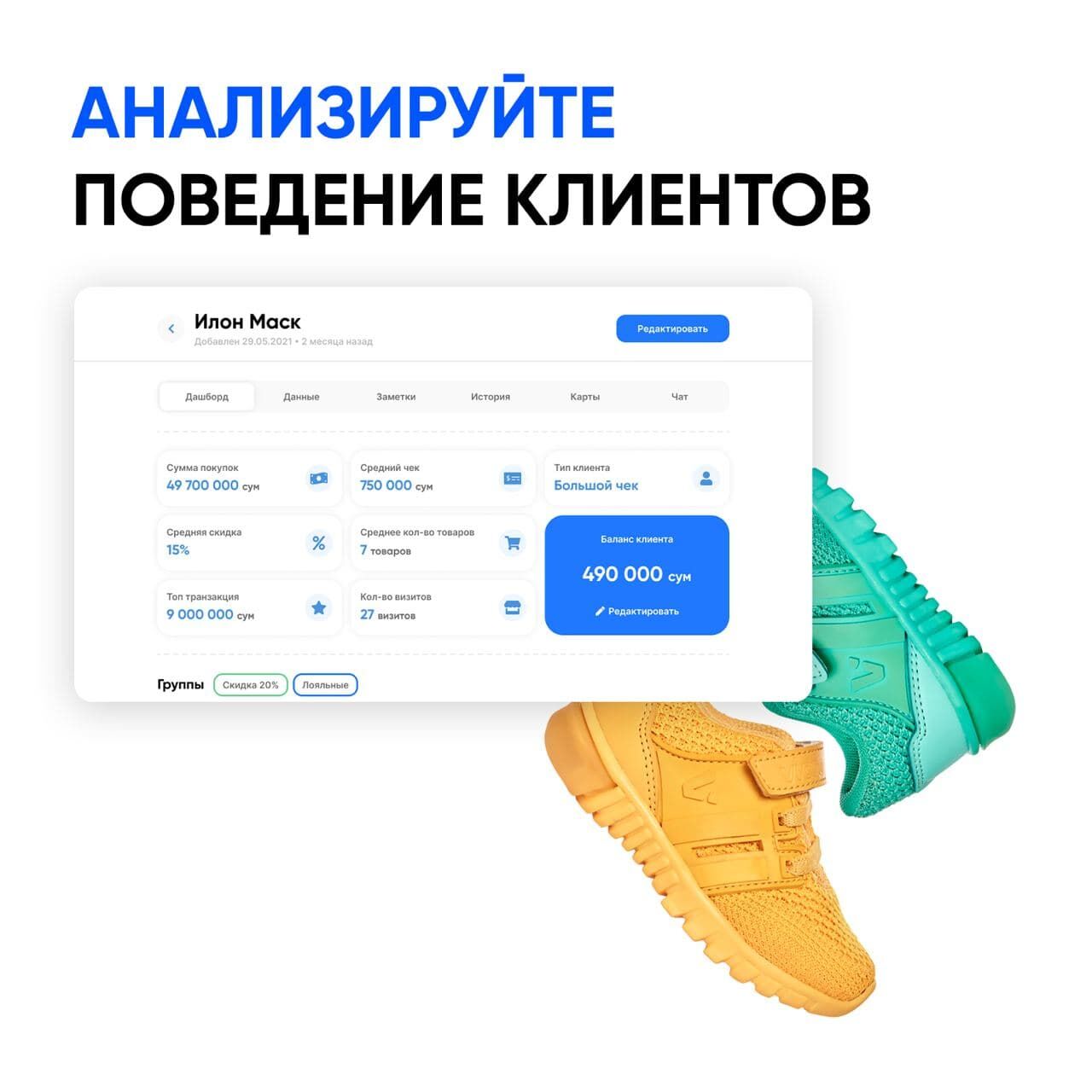 ‐ Вести учет клиентов и следить за историей их покупок