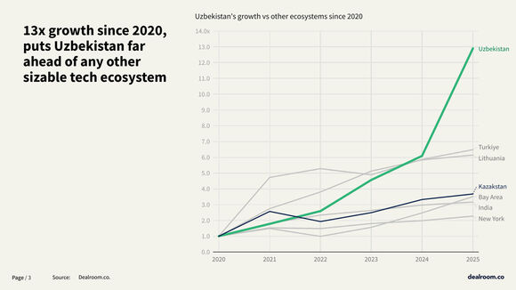 Стартап-экосистема Узбекистана выросла в 13 раз и выходит на мировой уровеньЗа 5 лет оценка стартап-экосистемы страны выросла до $3,9 млрд, обогнав по темпам роста Кремниевую долину.