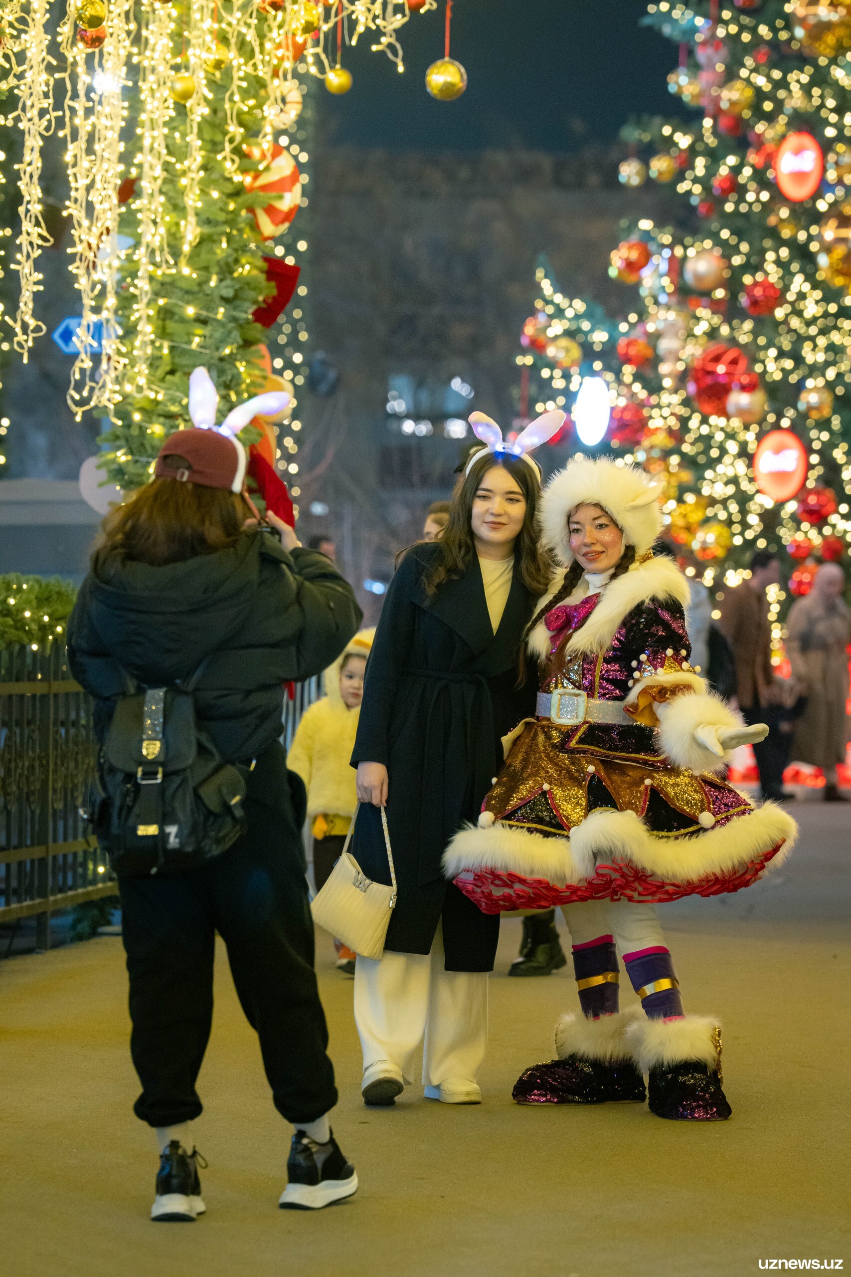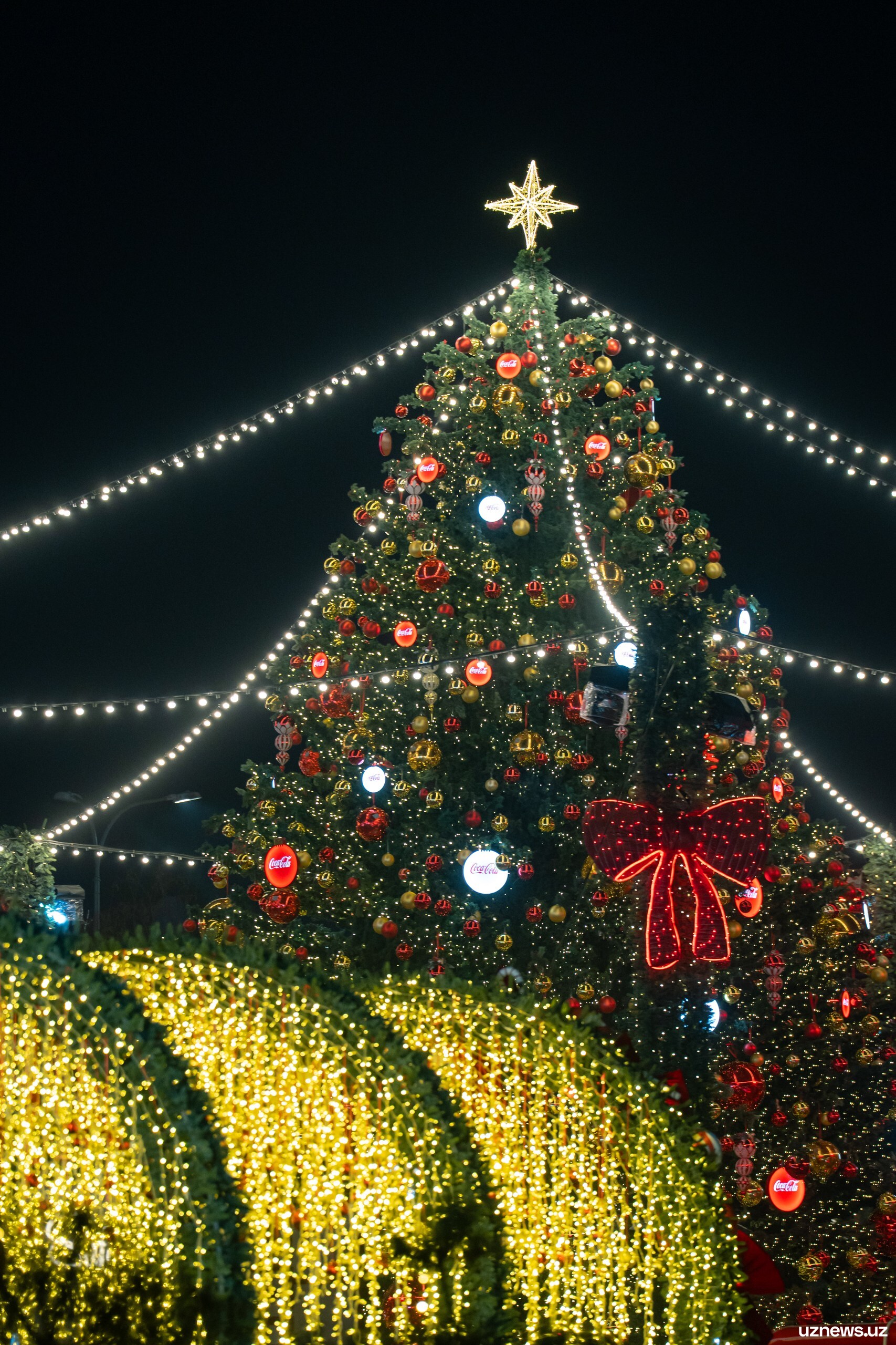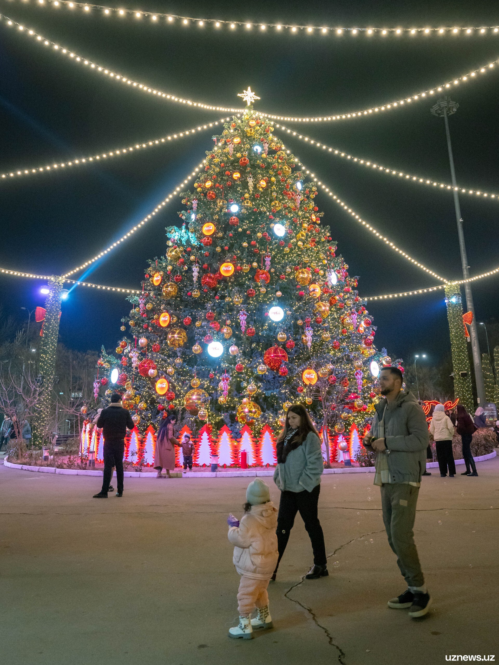 В конце декабря Ташкент традиционно преобразился к празднованию Нового года. Фотокорреспондент UzNews.uz Георгий Намазов побывал на ключевых праздничных площадках столицы и запечатлел самые яркие и атмосферные моменты новогоднего города.