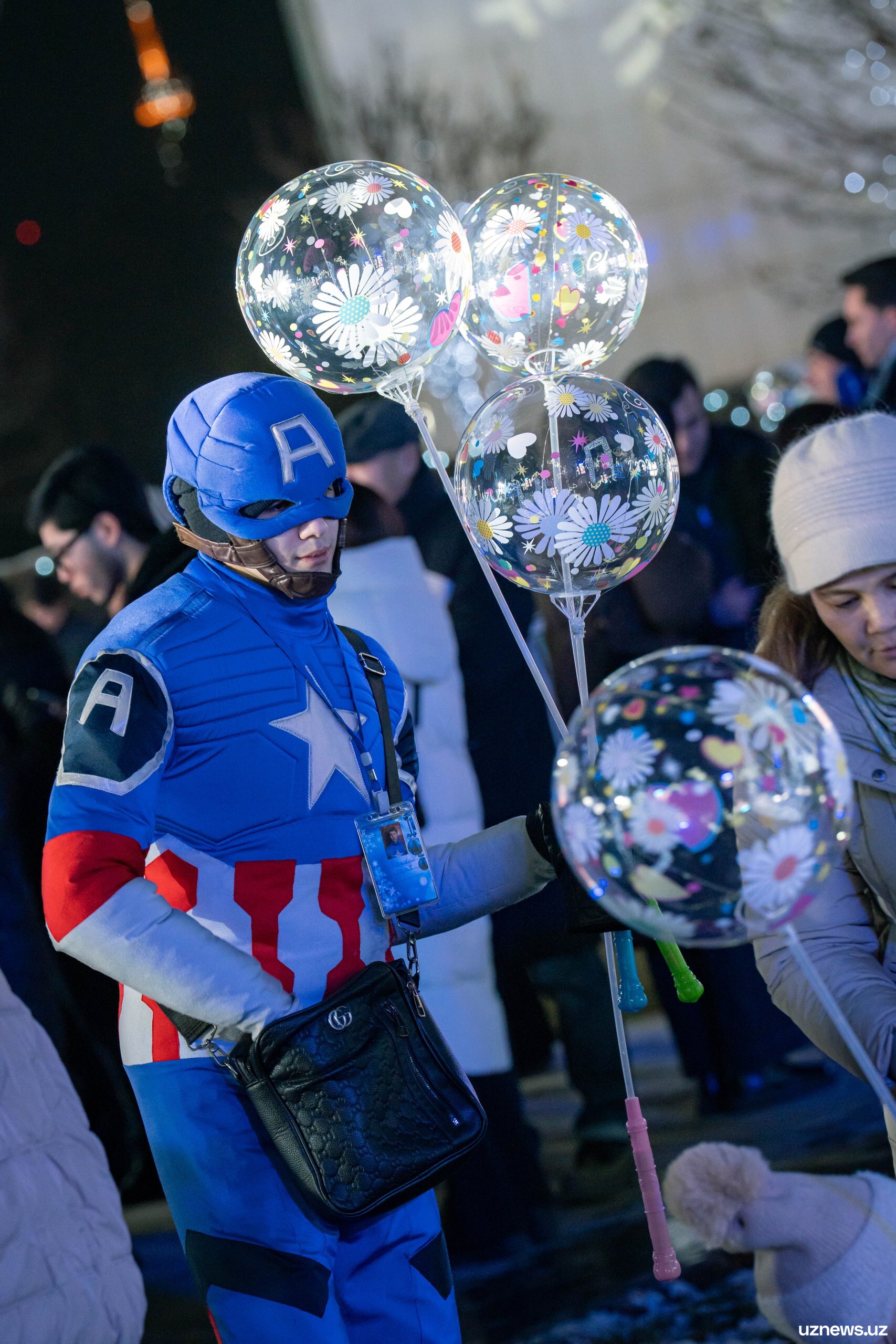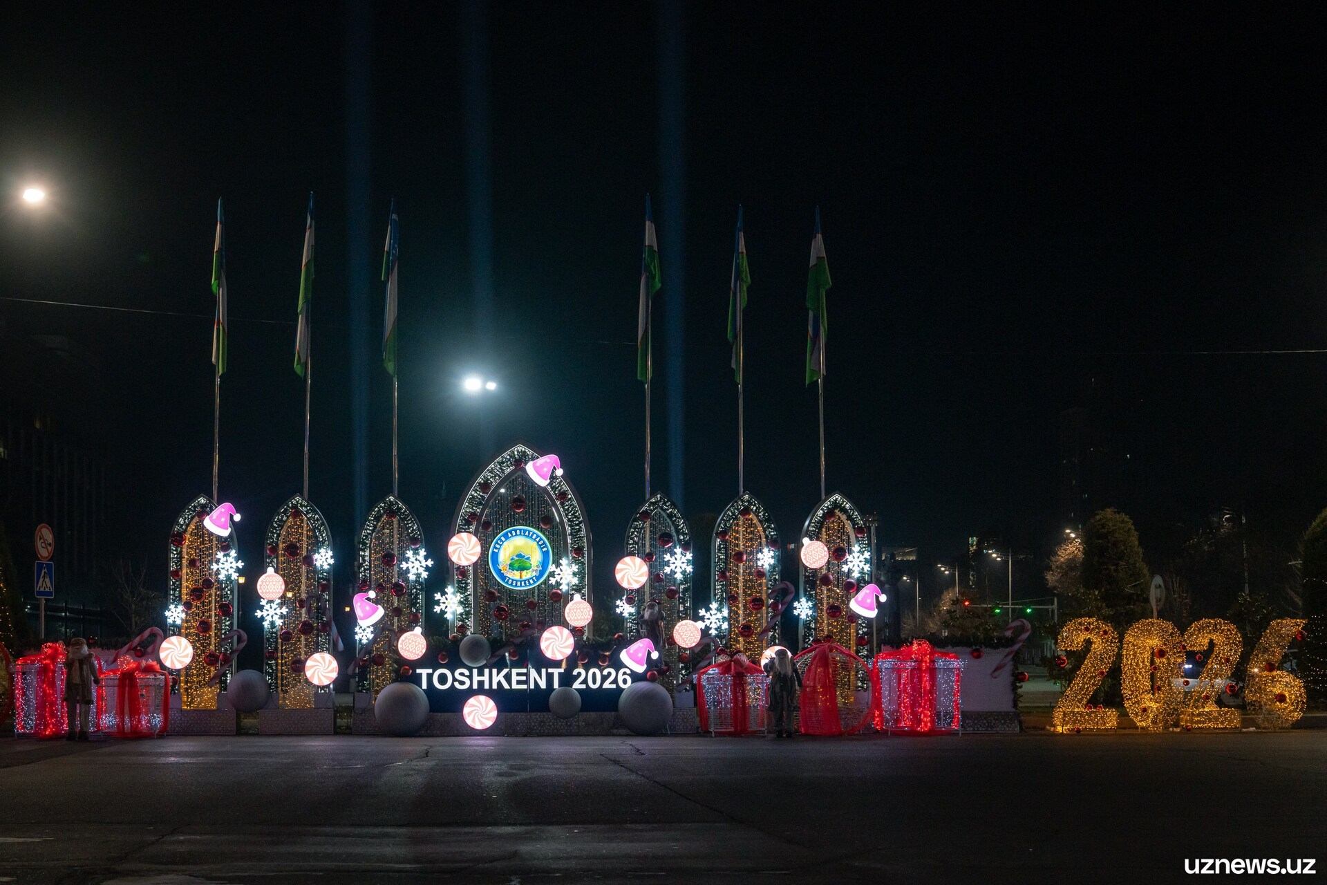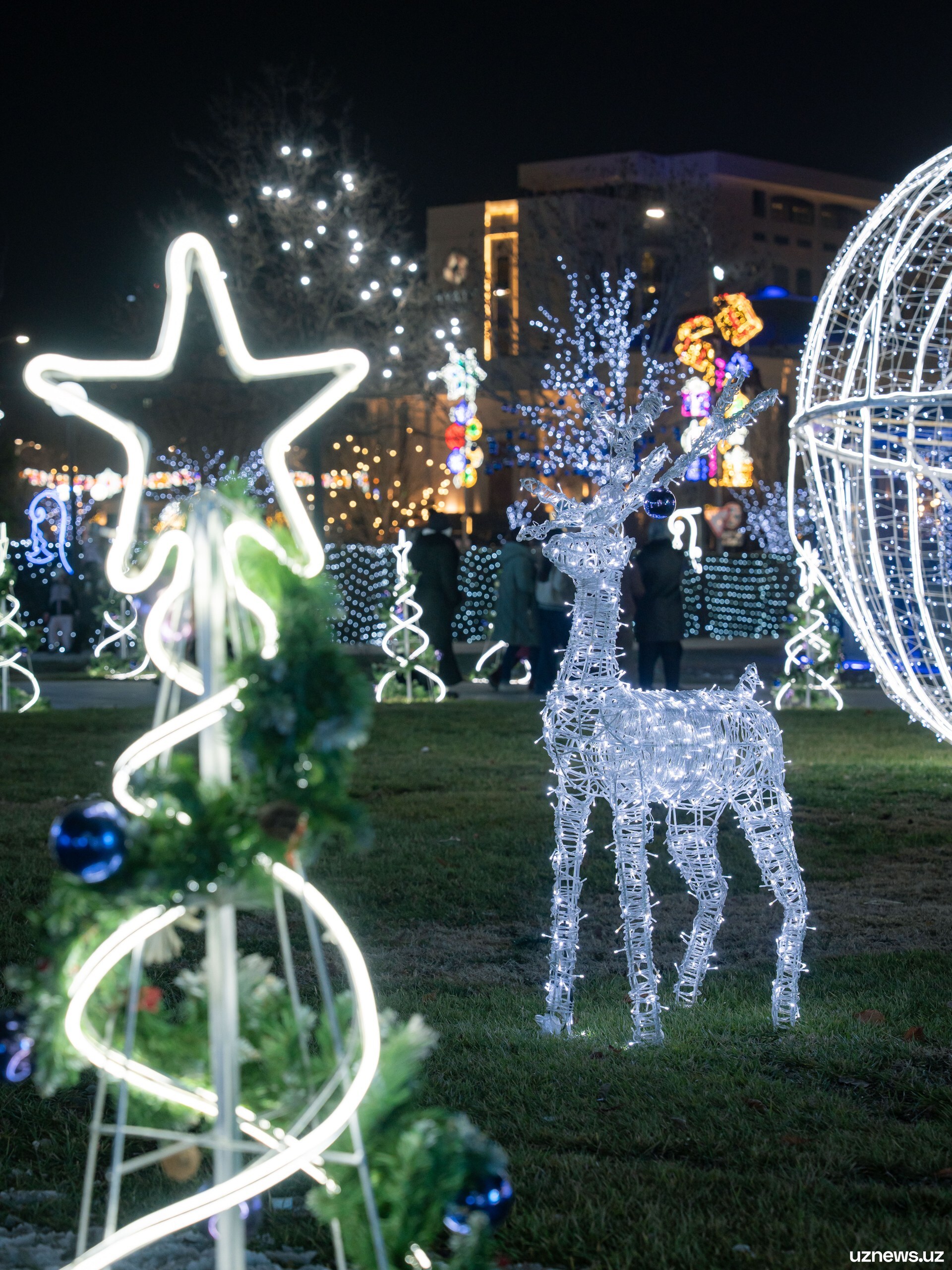 В конце декабря Ташкент традиционно преобразился к празднованию Нового года. Фотокорреспондент UzNews.uz Георгий Намазов побывал на ключевых праздничных площадках столицы и запечатлел самые яркие и атмосферные моменты новогоднего города.