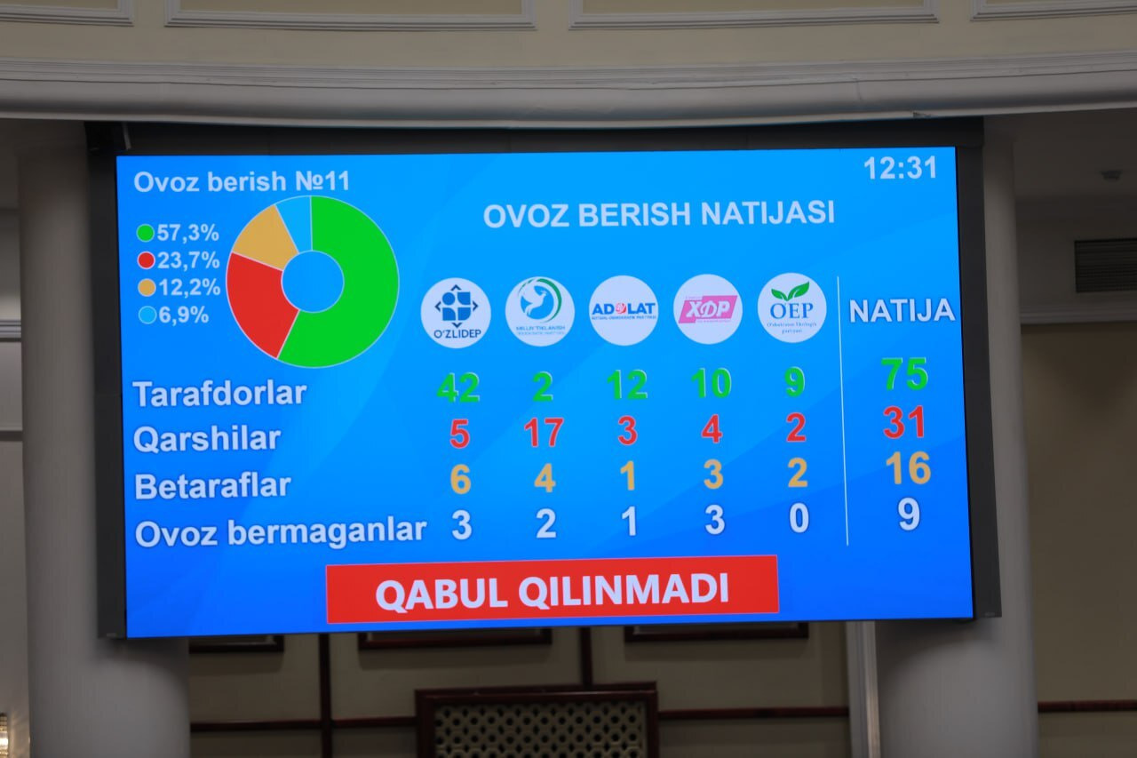 Узоқ тортишувлардан сўнг, қонун лойиҳаси қайта ишлаш учун масъул қўмитага қайтарилди.